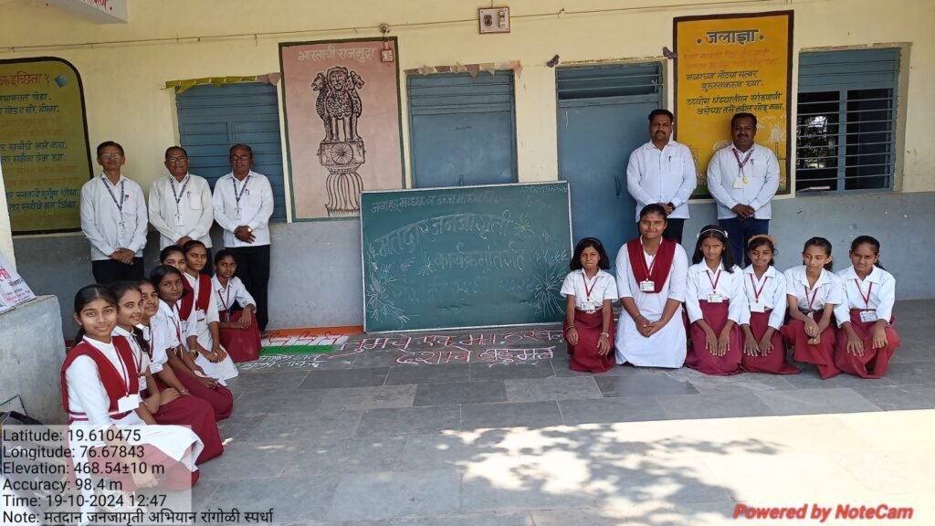 मतदार जनजागृती संदर्भातील “मतदार राजा जागा हो,लोकशाहीचा धागा हो….चला आपला देश घडवूया,सर्वांनी मतदान करूया….मतदान आमचा हक्क आहे,आम्ही तो बजावणार…. मतदान करा, मतदान करा….100% मतदान करा” या घोषवाक्यसह चित्रकला व रांगोळी स्पर्धेचे आयोजन करण्यात आले.